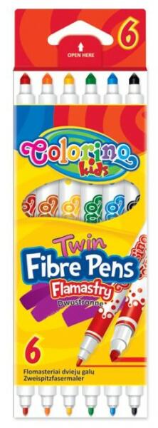 Colorino 6db-os kétvégű filctoll készlet 0,7mm/4mm Kétvégű filctoll készlet, melynek az egyik vége vastag (4 mm), a másik vékony hegyű (0,7 mm) A legtöbb textilből kimosható