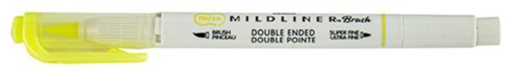 Ecsetirón kétvégű ZEBRA Mildliner Fluorescent sárga Bemutatjuk a Zebra Mildliner ecsetirónt! Ez az új termék ötvözi a Mildliner Creative Tool színeit és jellemzőit az ecsetirón korlátlan lehetőségeivel. A Zebra Mildliner ecsetirón kényelme érdekében dupla végű, ecsetszerű heggyel és finom rostirónnal rendelkezik. A lágy, enyhe Mildliner festék áttetsző, kiválóan ré