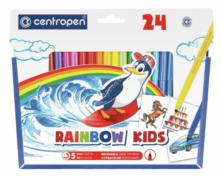 Centropen filctoll készlet 24 darabos készlet kerek filctoll test élénk színek száradás után 5 évig nem veszít a fényéből könnyedén lemosható, kimosható 1 mm vastag vonal