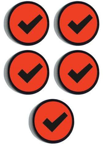 Kerek mágnes horog vagy síp szimbólummal, amely például a helyes megoldást vagy egy elvégzett feladatot mutatja. A merész színek jó láthatóságot biztosítanak.