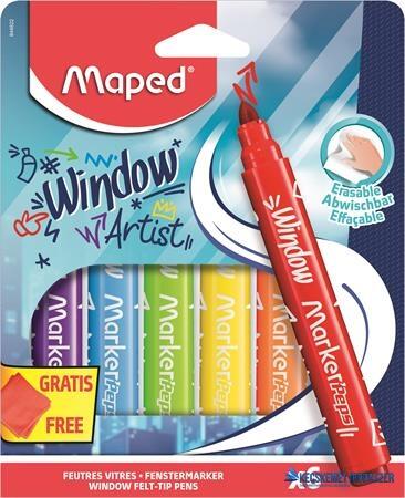 Ablakfilc készlet, vastag, törlőkendővel, 5 mm, MAPED "Marker`Peps", 6 különböző szín - IMA844822 - Filctollak - Kreatív szórakozás, maradandó nyomok nélkül! Ezekkel a filctollakkal a legkisebbek is gond nélkül írhatnak és rajzolhatnakk a lakás üveg-, vag