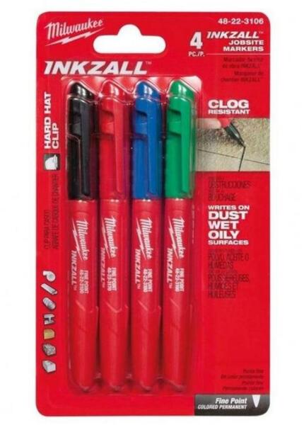 Milwaukee INKZALL Jelölő filc Vékony tartós hegyű (4 darabos kiszerelés, kék, piros, zöld és fekete) (48223106)