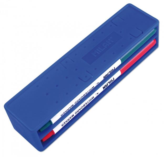 4 db-os táblafilc készlet (165894), mely vékony, hengeres testű táblafilcekkel (kék, fekete, zöld, piros) töltött. A készlet tartója egyben egy mágneses táblatörlő, mely mágnesének köszönhetően fém táblákra könnyen felhelyezhető. A filcek tintája gyorsan száradó, szagtalan, vízbázisú és könnyen letörölhető. Kiválóan alkalmazható szárazon törölhető felüle