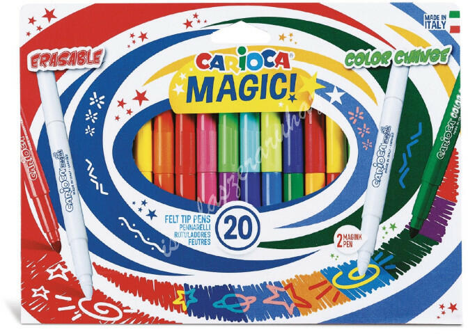 Carioca Magic 9+9+2 Varázsfilc készlet, amiben egyben tartalmazza a színváltós és radírozható filceket is. 6mm-es filctoll hegy