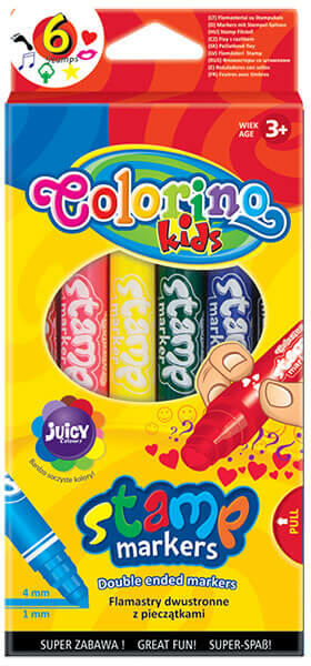 6-féle nyomdás végű filctoll készlet, mellyel a gyerekek kedvükre nyomdázhatnak. A különböző mintákkal dekorálhatsz meghívót, levelet, naplót stb. Minták: smiley, szív, nap, csillag, hold, alma, tappancs, felkiáltó jel, x jel, vasmacska. A kupakja szellőző. Ajánlott 3 éves kortól. A bőrről könnyen lejön, a legtöbb textíliából kimosható. Egészségre ártalmas anya