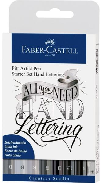 PITT művész filctoll kezdő készlet Hand Lettering ceruzával és hegyezővel | 9db A Faber-Castell a tintával való rajzolás minden előnyét egy modern és egyszerű, eldobható Pitt artist pen tollban egyesítette. A kiváló minőségű ecsethegy gyakori hajlítás esetén is megőrzi funkcionalitását anélkül, hogy megsérülne. A praktikus Hand Lettering PITT tinta marker készletben