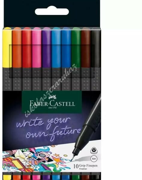 Faber Castell tűfilc készlet 10 darabos készlet háromszögletű filc test grip pöttyökkel ellátott a stabil fogás érdekében hosszantartó fénylő színek 0,4 mm vonalvastagság ideális vonalzó és sablon melletti használathoz