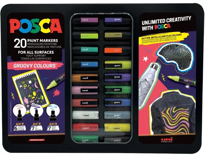 Uni Posca Filctoll készlet, 20 darabos, Groovy Ezt a kiváló minőségű filckészletet különböző felületek díszítésére használhatod! Üvegről, tükörről, műanyagról lemosható, kőről, fémről, papírról, textilről, fáról nem. Élénk színeivel tökéletesen fed. Textilre különösen praktikus választás, rajzolhatsz vele pamutra, vászonra, kidekorálhatod pólódat, to