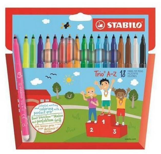Ergonomikus formatervezésű, háromszögletű filctoll, nagyobb nyomásnak is ellenálló rugós heggyel, a ruhából is egyszerűen kimosható, vízbázisú tintával (vonalvastagság: 1,5 - 2 mm)