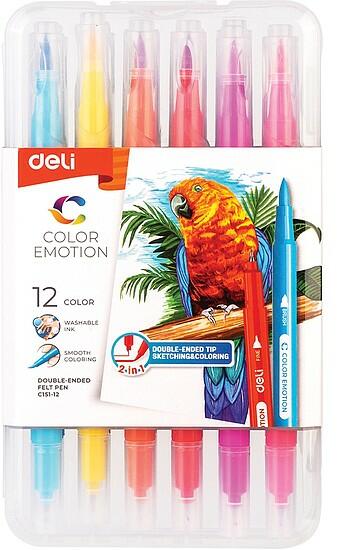 Ecsetfilc készlet, 2:1, kimosható, DELI COLOR EMOTION, 12 különböző szín