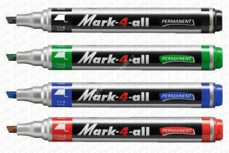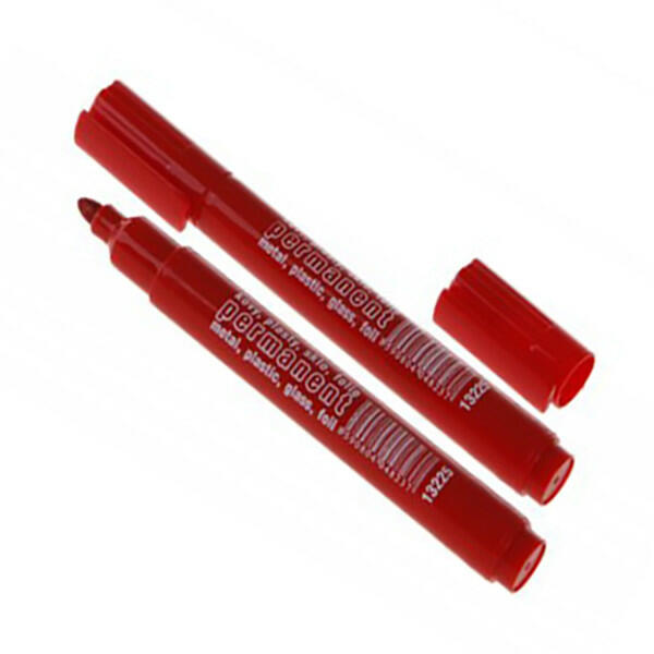 Széles marker Permanente elsősorban nem pórusos anyagokra írására alkalmas, mint a gumi, bőr, műanyag, beton, fa, fólia, üveg, porcelán, fém, vagy papír. Marker műanyagtestű, színes felső fedelet és clippet tartalmaz. Nyomvonal szélessége 2,5 mm, a tinta alkohol alapú, illatmentes, kopás, víz-, hő-, és időjárási ellenálló.