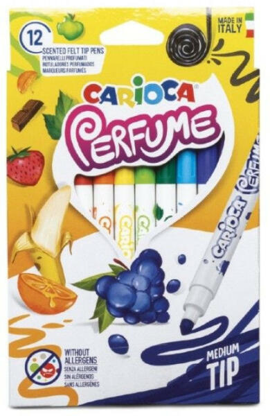 Az élénk színeket ebben a szettben a jó illatok egészítik ki. A Carioca Parfüm illatos filctoll készletben minden szín más más illattal párosul. A gyermekek így most alkotás közben olyan csodás illatokat érezhetnek, mind a csokoládé, szőlő, menta, vanília és akár a levendula is. Alkotás közben a különböző érzékszervek használata biztosan még kreatívabbá teszi a