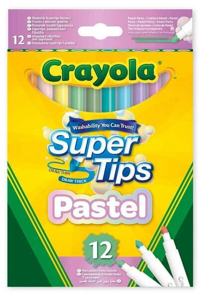 12 db-os filckészlet pasztell színekben. A filctollak hegye alkalmas vékony és vastag vonalak létrehozására is. Ezek a prémium minőségű filctollak ideálisak az iskolai és otthoni alkotáshoz. A tinta könnyedén lemosható a bőrről és kimosható a ruhából. 8x7x11 cm