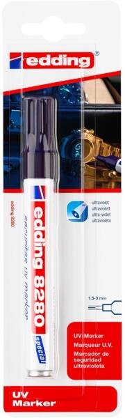 UV marker szinte minden felület rejtett jelöléséhez és feliratozásához. A kerekített csúcs vonalvastagsága 1,5 mm - 3 mm. Permanens, gyorsan száradó tinta, amely csak UV fény alatt válik láthatóvá. Magas minőségű alumínium test. UV marker szinte minden anyag rejtett jelöléséhez és feliratozásához. A kerekített csúcs vonalvastagsága 1,5 mm - 3 mm. Permanens, gyorsan sz