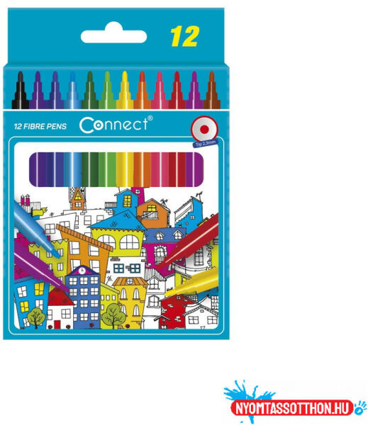 Rostirón, filctoll készlet, Connect háromszög alakú megfogóval, 12 klf. szín Kiváló minőségű tűfilc. A test háromszögletű kialakítása biztosítja a könnyű, kellemes tartást. Több színben és készletben elérhető. Írás színe megegyezik a kupak színével. Katalóguskód: 23393