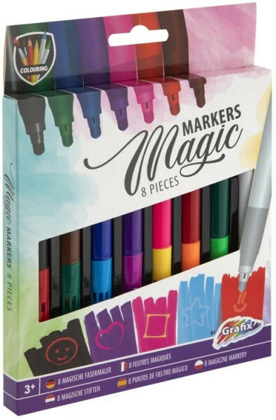 Magic Markers - Varázs filc 7+1 Magic Markers - Varázs filc 7+1. Rajzolj és színezz a gyönyörű varázs filctoll akkal. Ha a fehér filccel lerajzolsz valamit, és egy színessel rászínezel, akkor a minta kirajzolódik egy más színnel. A készletben 8 féle színű filctoll található! Magic Markers - Varázs filc 7+1 jellemzői: Mérete: 13,5 cm Anyaga: műanyag 3 év alatti gyermekekn