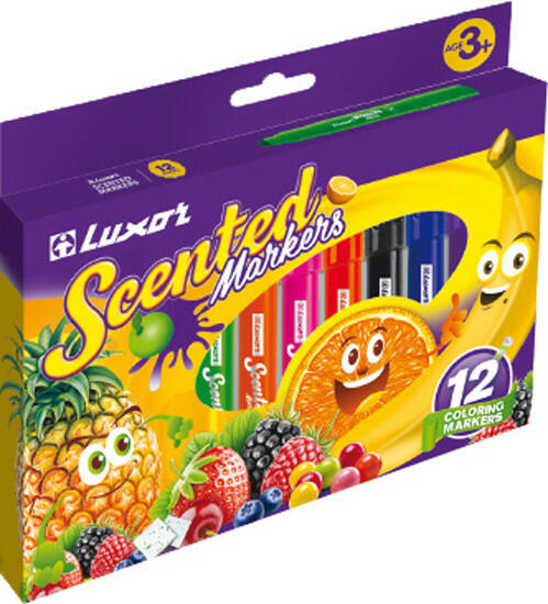 Filctoll készlet rajzoláshoz, vagy tanuláshoz. Luxor illatos filctoll készlet, papír dobozban, 12 db/készlet. Gyümölcs illatú tintával töltött filctollak. Kellemes illatot áraszt színezés közben. Mérgezőanyag-mentes vízbázisú tinta.