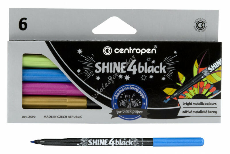 Centropen metál filctoll készlet 6 darabos készlet háromszögletű filctoll test metál színek 1 mm vastag vonal UV álló