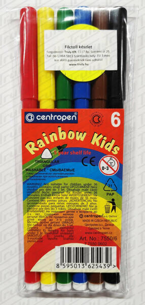 Centropen filctoll készlet 6 darabos készlet kerek filctoll test élénk színek száradás után 5 évig nem veszít a fényéből könnyedén lemosható, kimosható 1 mm vastag vonal