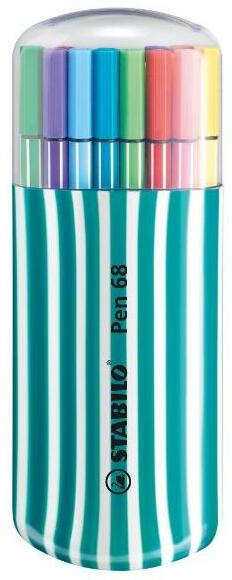 20 db. -os filctoll készlet műanyag türkiz-fehér csíkos dobozban. Vonalvastagság: 1,0 mm. Szagtalan, vízbázisú festék, formatartó kerek hegy.