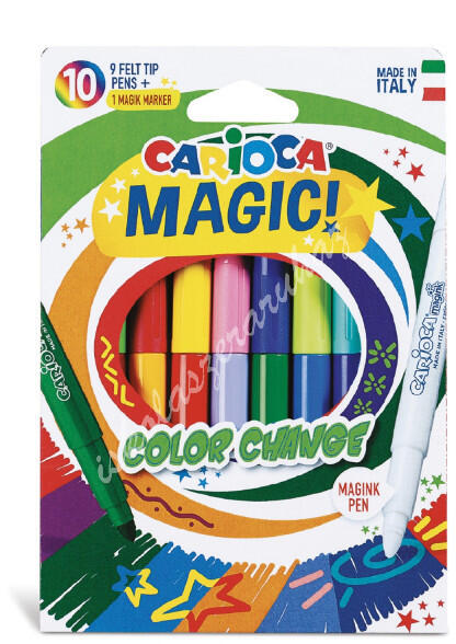 Carioca varázsfilc készlet A Carioca varázsfilc készlet egy nagyon különleges filctoll. A filctoll test színe jelzi, hogy milyen színűen fog a filctoll, a kupakja illetve a test vége pedig azt jelzi, hogy ha átszínezzük a csomagban található fehér „ varázsfilccel akkor arra a színre fog átváltozni. Ez aztán az igazi varázslat! Kevesen tudják, de ha csak a fehér varázsfil