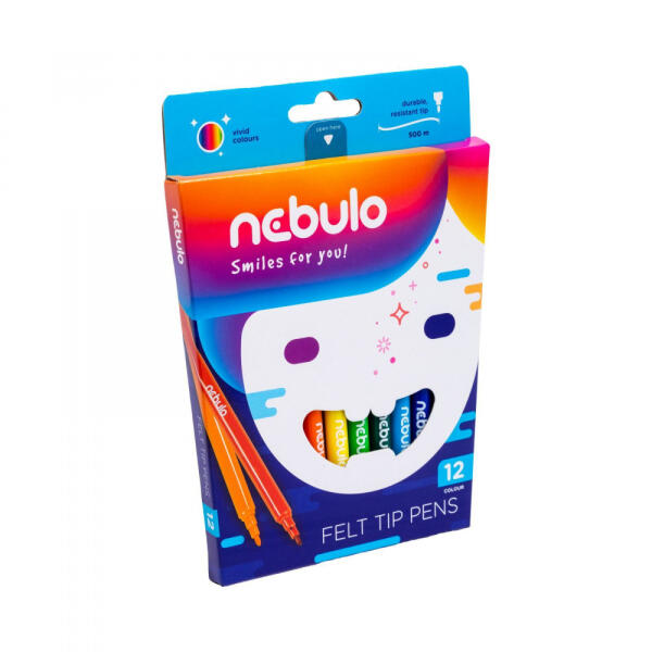Filctoll 12db Nebuló Filctoll 12db Nebuló egy v ízbázisú, kimosható festékkel töltött 12 színes rostirón készlet, mely a normál használat mellett nem áztatja a papírt és hosszú élettartammal rendelkezik. Élénk színek és kiváló fedőképesség jellemzi, valamint a ruhából könnyen kimosható. Filctoll 12db Nebuló jellemzői: Vízbázisú Élénk színek Strapabíró hegy