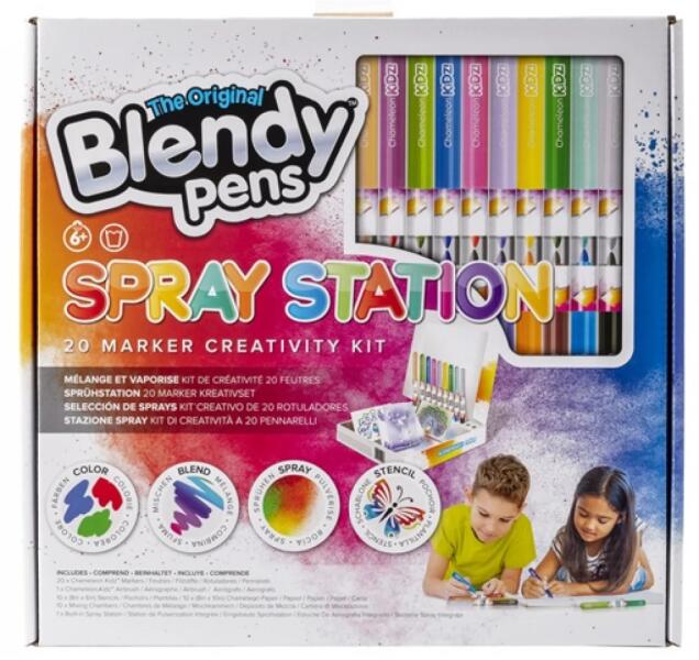A Blendy Pens nem csak egy filctoll szett! Egyedülálló színátmenetes, vagy festékszórós kreatív élményt nyújt! A Blendy Pens kreatív filctollakkal szuper alkotásokat készíthetsz, melyhez ebben a csomagban 20 db filctollat találsz. Természetesen a csomag része még 10 db sablon, 10 db szinezhető képkeretes lap, 1 db fúvóka és 10 db mágikus henger a színek keveréséhez. A