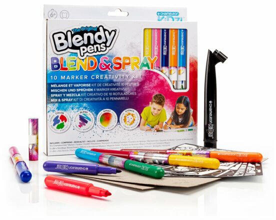 A Blendy Pens nem csak egy filctoll szett! Egyedülálló színátmenetes, vagy festékszórós kreatív élményt nyújt! A Blendy Pens kreatív filctollakkal szuper alkotásokat készíthetsz, melyhez ebben a csomagban 10 db filctollat találsz. Természetesen a csomag része még 2 db sablon, 6 db szinezhető kép, 1 db fúvóka és 5 db mágikus henger a színek keveréséhez. A szuper filctol