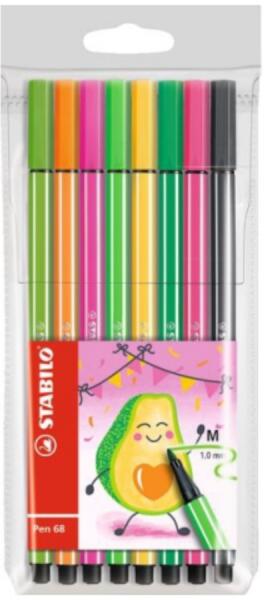 Stabilo: Pen 68 avokádós 8db-os színes rostirón szett Hivatalos magyarországi forgalmazótól. Leírás: Kicsik és nagyok számára egyaránt remek választás ez a 8db-os színes rostirón szett, melyben az avokádó színei dominálnak, melyre a dobozon található vidám minta is utal. A Stabilo Pen 68 termékcsaládja kimagasló minőségű filctollakat tartalmaz, melyek 1mm-es hegyükne