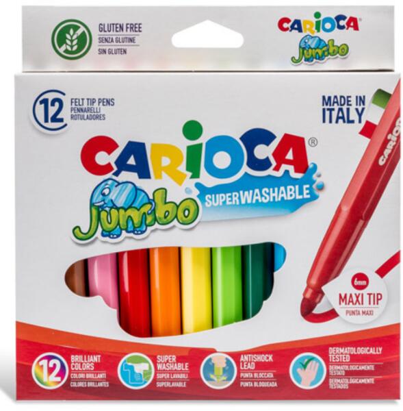 Jumbo filctollszett 12db - Carioca Hivatalos magyarországi forgalmazótól. Leírás: Használj igazán élénk színeket alkotásaid elkészítésekor! A különleges Jumbo filctollak a kicsik számára is könnyen megmarkolhatóak, így élvezetes rajzolást nyújt számukra is a készlet. A vastag vonalakhoz és a színezéshez tökéletes filcek remek szórakozást biztosítanak, valamint a k