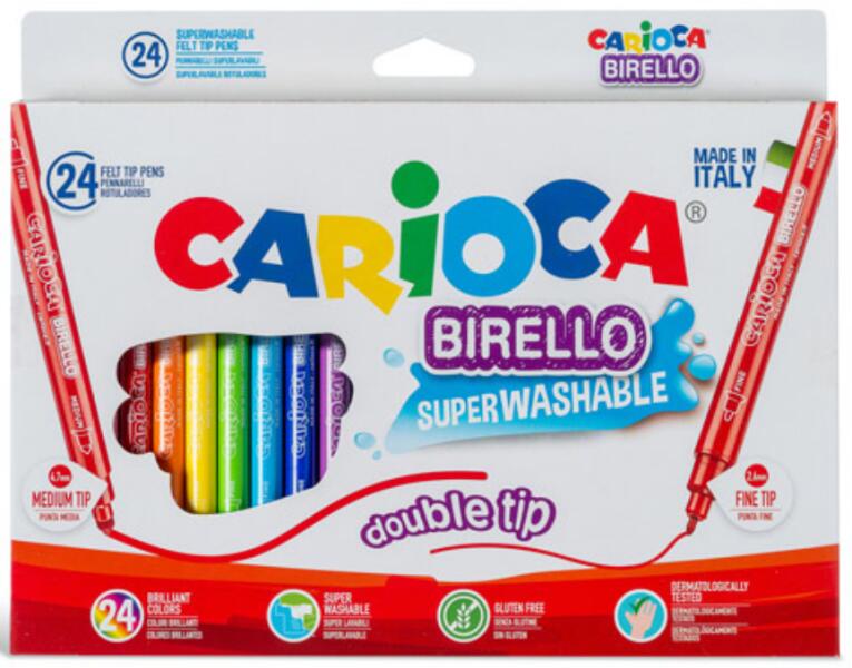 Carioca Birello filctoll Ez a Birello készlet 24 darab kétvégű filcet rejt magában. A filctoll teljesen biztonságos, bőrgyógyászok által tesztelt, és nem tartalmaz semmilyen mérgező anyagot. A kétvégű filctollak segítségével igazán szabadjára engedheted a fantáziádat, hiszen ha vastagabb vonalra van szükséged, akkor használd azt a felét, ha viszont vékonyabban szeretné