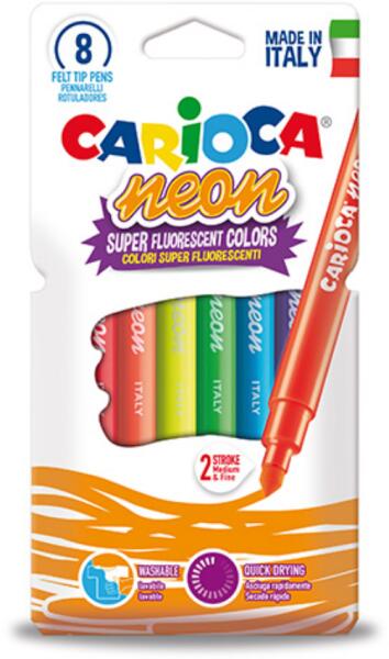 Fluoreszkáló neon színű filctoll 8 db-os készlet - Carioca Hivatalos magyarországi forgalmazótól. Leírás: Ha valamire igazán fel szeretnéd hívni valakinek a figyelmét, vagy a tanulás közben rendkívül fontos anyagra bukkantál, akkor érdemes elővenni ezeket a nagyszerű neon filceket, amelyekkel rajzolhatsz, írhatsz, de használhatod szövegkiemelőként. A filcekben lévő any