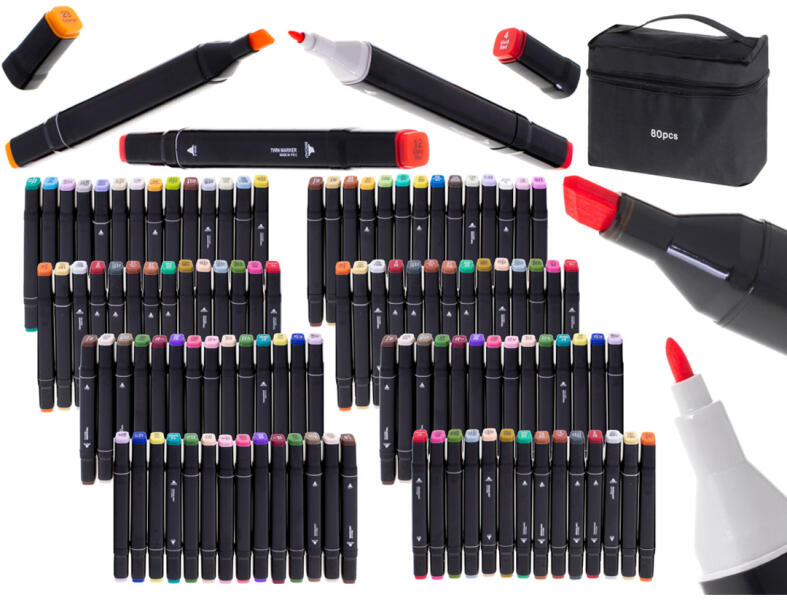 80 db kétoldalas alkoholos filctoll szett tokban, különböző színek Hozz egy kis színt az életedbe! Ezek az intenzív színekkel ellátott kétoldalas filctollak biztosan serkentik kreativitásod, és gyönyörű új műalkotások létrehozására ösztönöznek. A 80 db filctoll remek választás lesz, akár építész, akár grafikus, akár gyakorlott illusztrátor, akár művészi útj