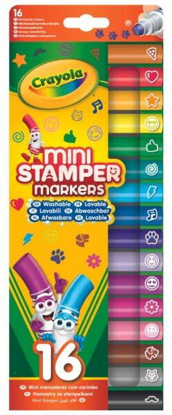 Hogyan lehet még különlegesebbé tenni egy sormintát?Hát úgy, ha menõ szimbólumokból áll össze egésszé! A Crayola Mini mintázó 16 különbözõ színű filctollat tartalmazó készletével a gyerekek kedvükre nyomdázhatnak. A filctollak más-más mintájú heggyel rendelkeznek, így a kicsik szívecske, hangjegy, tappancsnyom, pizza, emoji és még sok más mintából válogathatn
