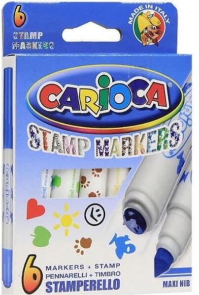 Nyomdafilc készlet 6db - Carioca Hivatalos magyarországi forgalmazótól. Leírás: Ne csak színezz és rajzolj, egészítsd ki alkotásaidat a különleges motívumokkal! A filc egyik felével a hagyományos módon rajzolhatsz vastag és vékony vonalakkal, míg a másik végével állatmintákat és egyéb formákat nyomdázhatsz a rajzodba. Pecsételj halacskát, csillagot és pillangót is