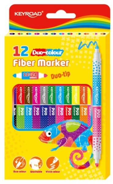 Kétvégű rostirón készlet 12 db = 24 élénk szín Mosható