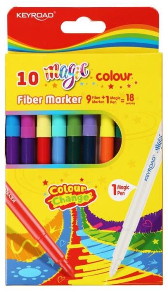 Varázslatos, élénk színek 9 szín + 1 mágikus toll = összesen 18 szín Biztonsági kupakkal a fulladás lehetséges kockázatainak megelõzésére 2 különbözõ vonalvastagságú hegy, vékony és vastag színezéshez 12 db/doboz