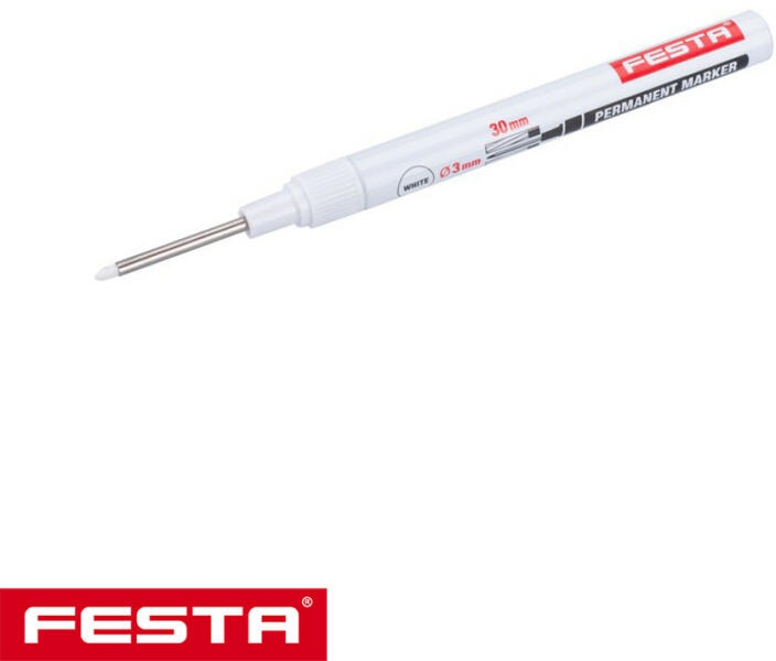 F uratközéppont jelölő filc - fehér Tartós jelölés Furatközéppont jelölő filc - fehér Tartós jelölés A csúcs átmérője 3 mm, így lehetővé teszi a kis átmérők jelölését akár 30 mm vastag anyagokon keresztül A legtöbb felületre alkalmazható