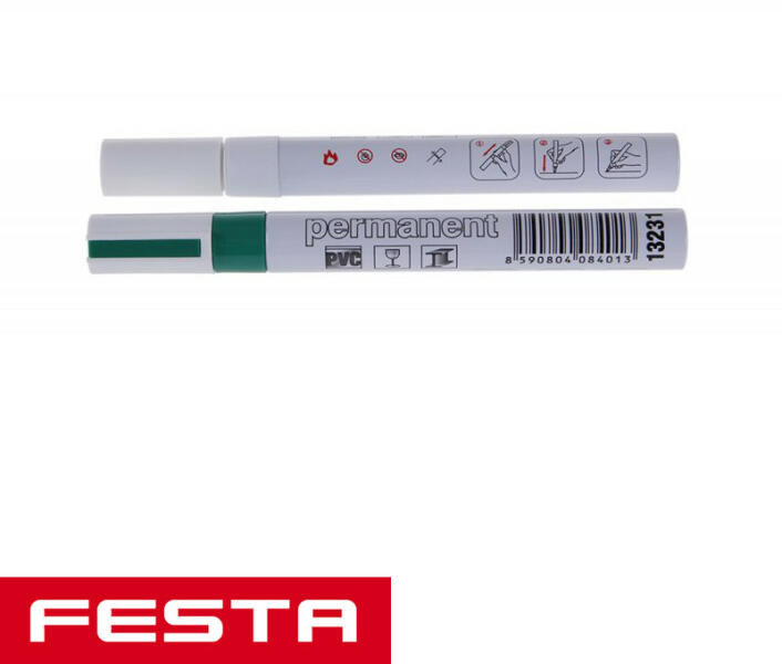 jelölőfilc - zöld, vékony - 1 mm tartós Hegyes marad, nem deformálódik el Akril hegy kiváló durva felületek jelöléséhez, mint OSB lapok vagy beton Akár 72 óra után is használható Beton, fa, préselt lemez, OSB, műanyag jelöléséhez Használható száraz, vizes vagy törmelékes felületen Gyors száradási idő - kevesebb elkenődött jelölés a PVC és fém felületeken Jól