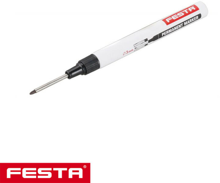 F uratközéppont jelölő filc - fekete Tartós jelölés Furatközéppont jelölő filc - fekete Tartós jelölés A csúcs átmérője 3 mm, így lehetővé teszi a kis átmérők jelölését akár 30 mm vastag anyagokon keresztül A legtöbb felületre alkalmazható