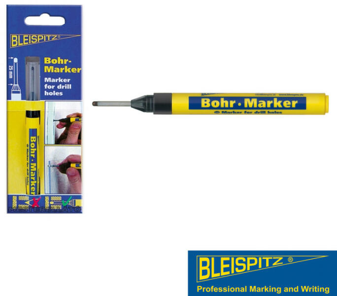 furatközéppont jelölő filc (fekete) (furatjelölő) Furatok és nehezen hozzáférhető helyek jelölésére alkalmas mélyfuratjelölő filc Extra hosszú, 25 mm-es, vékony nemesacél heggyel – ideális a szerelési munkálatokhoz A speciális fej-kialakítás megakadályozza a becsúszást, ha túl erősen megnyomnánk Vízálló szinte minden felületen