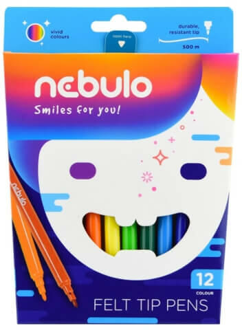 Nebuló márkájú filctoll készlet, 12 színben. Élénk színek. Nem áztatja át a papírt és hosszan tart.