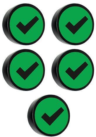Kerek mágnes horog vagy síp szimbólummal, amely például a helyes megoldást vagy egy elvégzett feladatot mutatja. A merész színek jó láthatóságot biztosítanak.
