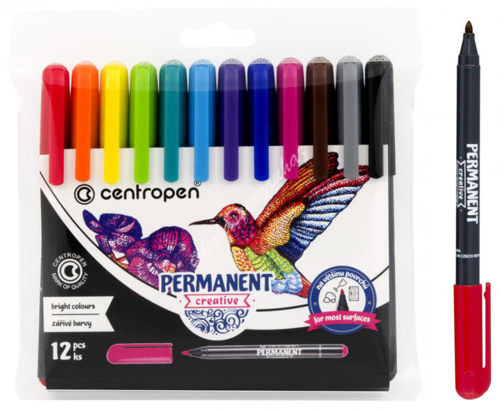 Centropen alkoholos filctoll készlet kreatív felhasználásra szánt alkoholos filctoll készlet 12 fénylő szín otthoni, iskolai és irodai felhasználásra és kreatív munkákra minden felületen ír alkohol bázisú kerek hegy 2 mm vastagságú vonal