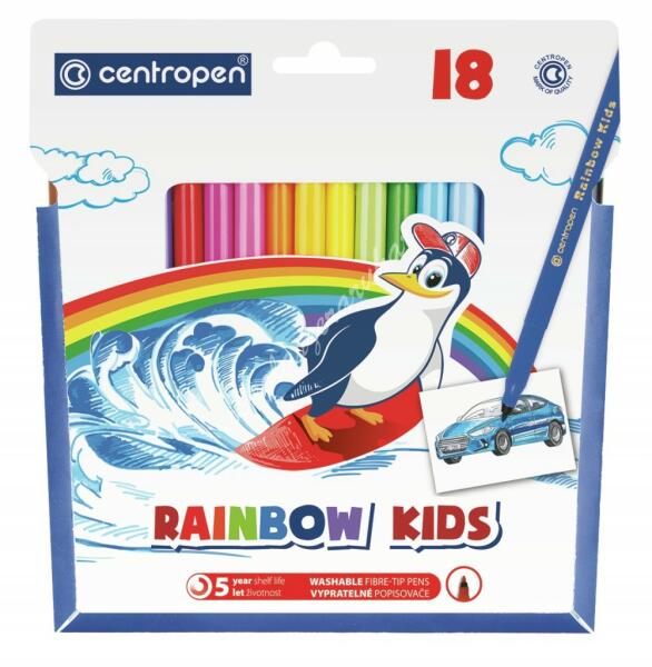Centropen filctoll készlet 18 darabos készlet kerek filctoll test élénk színek száradás után 5 évig nem veszít a fényéből könnyedén lemosható, kimosható 1 mm vastag vonal