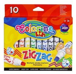 Különleges ZIG-ZAG végű filctoll készlet - lásd a 2. nagy képen. 10 színű fictoll készlet. Ajánlott 3 éves kortól. A bőrről könnyen lejön, a legtöbb textíliából kismosható. Kupakja szellőző. Kiváló minőségű Colorino termék.