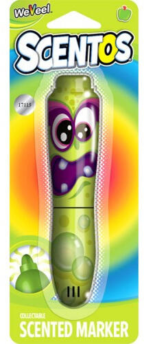 Készíts színes és illatozó alkotásokat a Scentos különleges filctollával! Írj, rajzolj, vagy színezz az illatos filctollal, és a papírlap zöldalma illatúvá válik! A filctoll méretei miatt könnyen kézbe fogható, külsejét vicces minta díszíti. Amikor rajzolsz, rakd a filctoll kupakját a filc másik végére, így biztosan nem veszted el a fránya kupakot, és könnyen megő