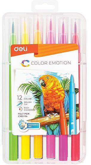 Ecsetfilc készlet, 4,1 mm, kimosható, DELI COLOR EMOTION, 12 különböző szín