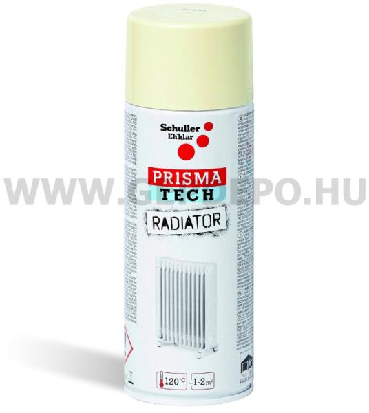 Schuller Eh‘klar Prisma TECH RADIATOR hőálló lakkspray - 400 ml, krémfehér 120°C-ig hőálló lakkspray radiátorok, kályhacsövek stb. festéséhez. RAL9001 színű. Gyorsan száradó és hőálló lakkspray radiátorok, bojlerek, kályhacsövek, stb. felújításához, javításához. Hőálló akrilgyanta, nagy fedőképességgel és nagyon jó tapadással a felületekhez. Szín- és f