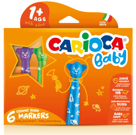 Izgalmas innovativitás, hogy kitűnjön a tömegből! összekapcsolható kupakok magas pigmenttartalom, 12 élénk, mosható szín (fekete, barna, sötétzöld, világoszöld, citromsárga, narancssárga, piros, rózsaszín, világoskék, sötétkék, lila, ciklámen) háromszög alakú test a kényelmes fogás érdekében vízbázisú tinta, könnyen lemosható a bőrről és a legtöbb textíli